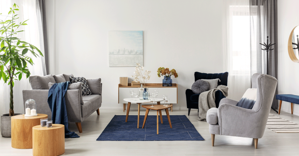 Maintain a tidy living room by keeping floors and surfaces clear. You can achieve this on a variety of budgets.